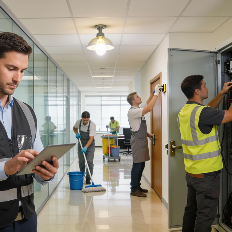Durch klar definierte Prozesse, strukturierte Verantwortlichkeiten und transparente Kostensteuerung gewährleisten wir Verfügbarkeit, Werterhalt und ein sicheres, normkonformes Arbeitsumfeld.